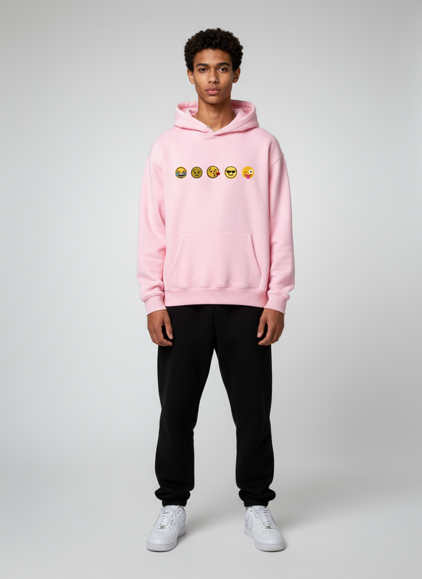 Don’t just wear your heart on your sleeve—wear your whole mood across your chest! The Vibe Check features a playful line-up of our favorite expressive emojis. From the laughing-crying face to the cool shades and the playful wink, this hoodie is a conversation starter that lets everyone know exactly where you stand (which is usually happy).