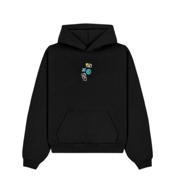 Your next adventure starts here. The Traveler is for the global thinkers, the daydreamers, and the passport holders. Featuring a quartet of iconic travel patches—the camera, airplane, passport, and globe—this hoodie is an instant mood boost and a promise of new horizons.